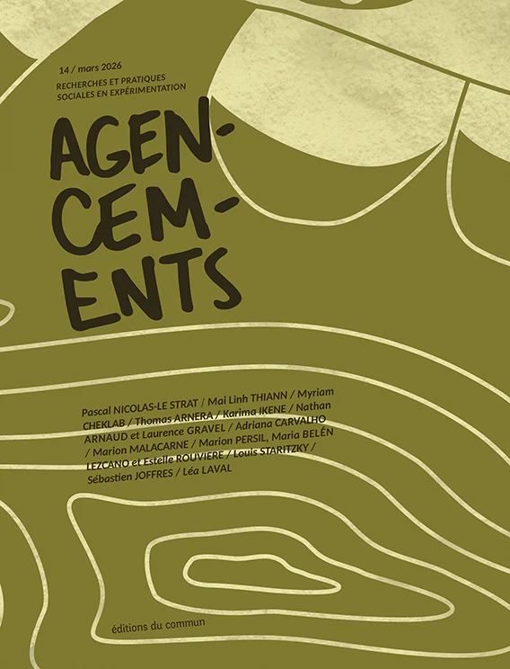 Le numéro 14 de la revue Agencements est en vente chez votre librairie ou auprès des Editions du commun : https://www.editionsducommun.org/collections/revue-agencements/products/agencements-n-14-mars-2026